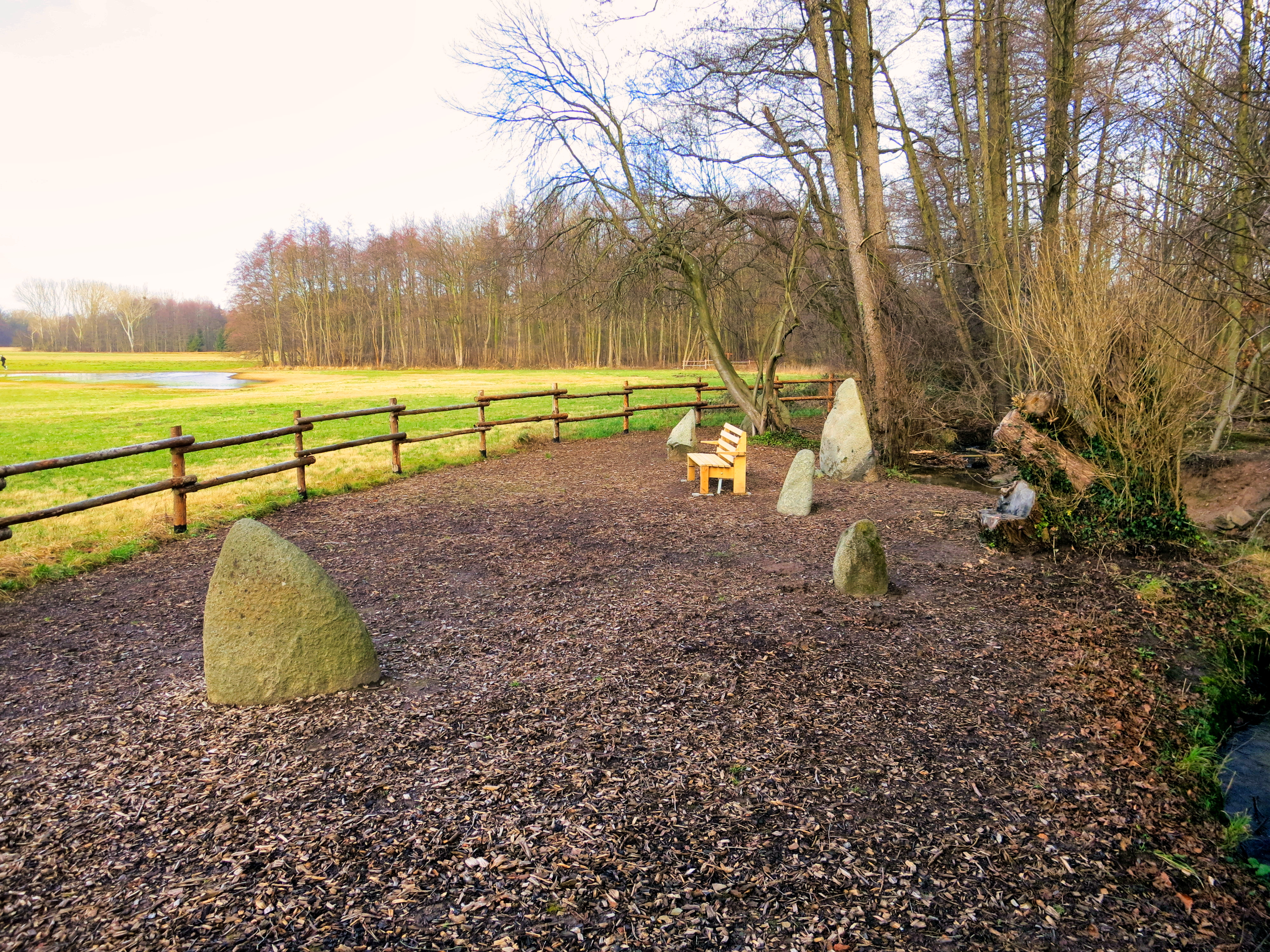 Small impressions of the Neolithic Menhir site Hirtenwiese in Darmstadt-Ost, directly at the nature reserve (NSG) Scheftheimer Wiesen (Meadows).