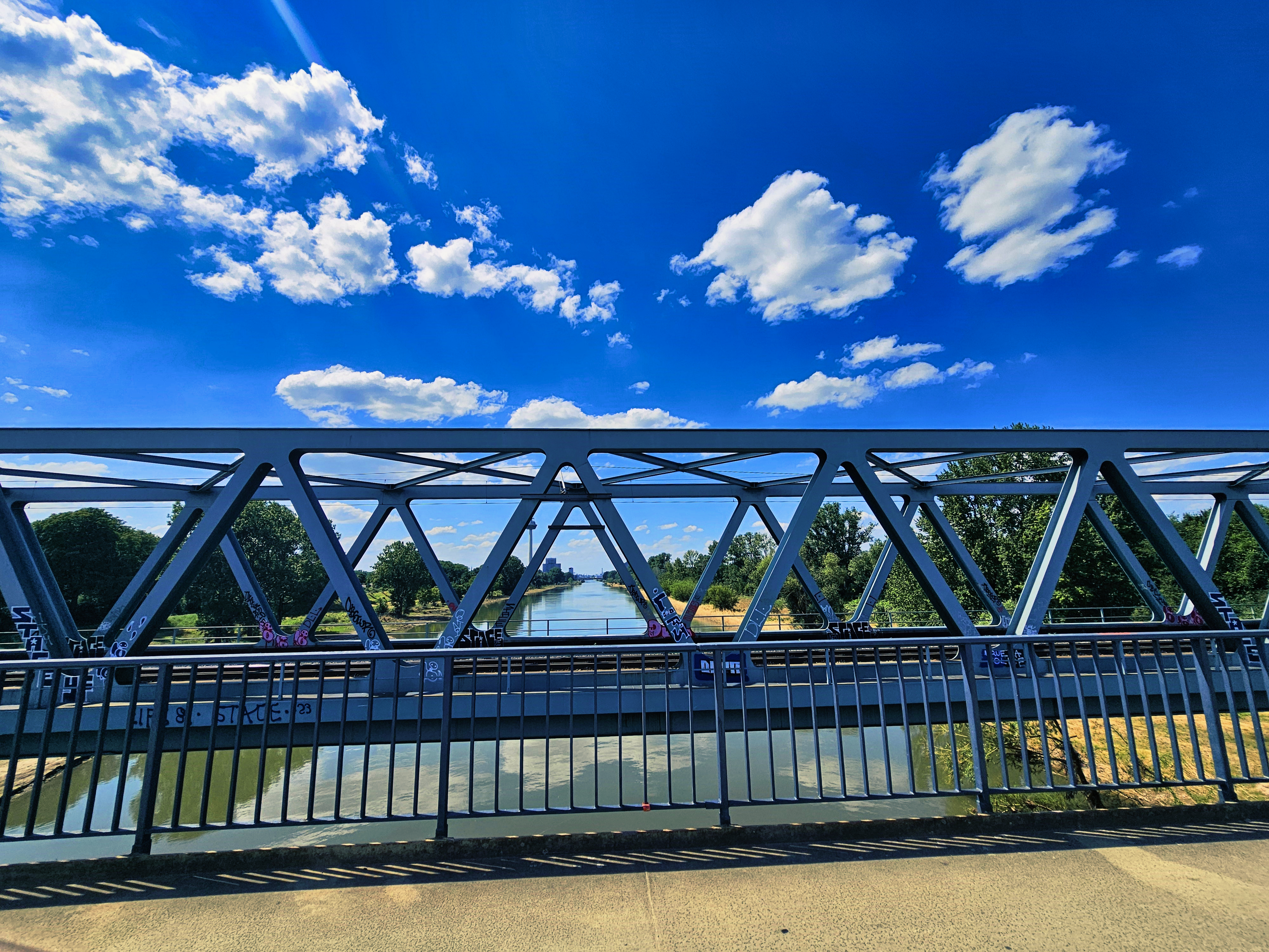 24/06/2024 Mannheim-Feudenheim & Neuostheim/Neuhermsheim- The views from the Riedbahnbridge over the Neckar in the middle of the districts: